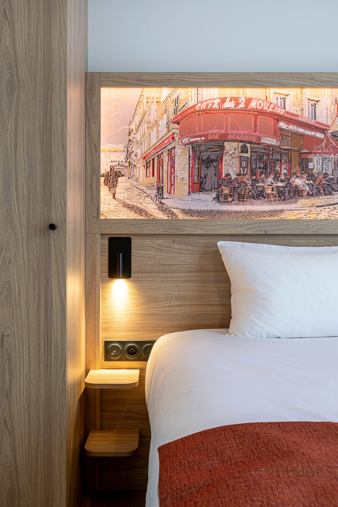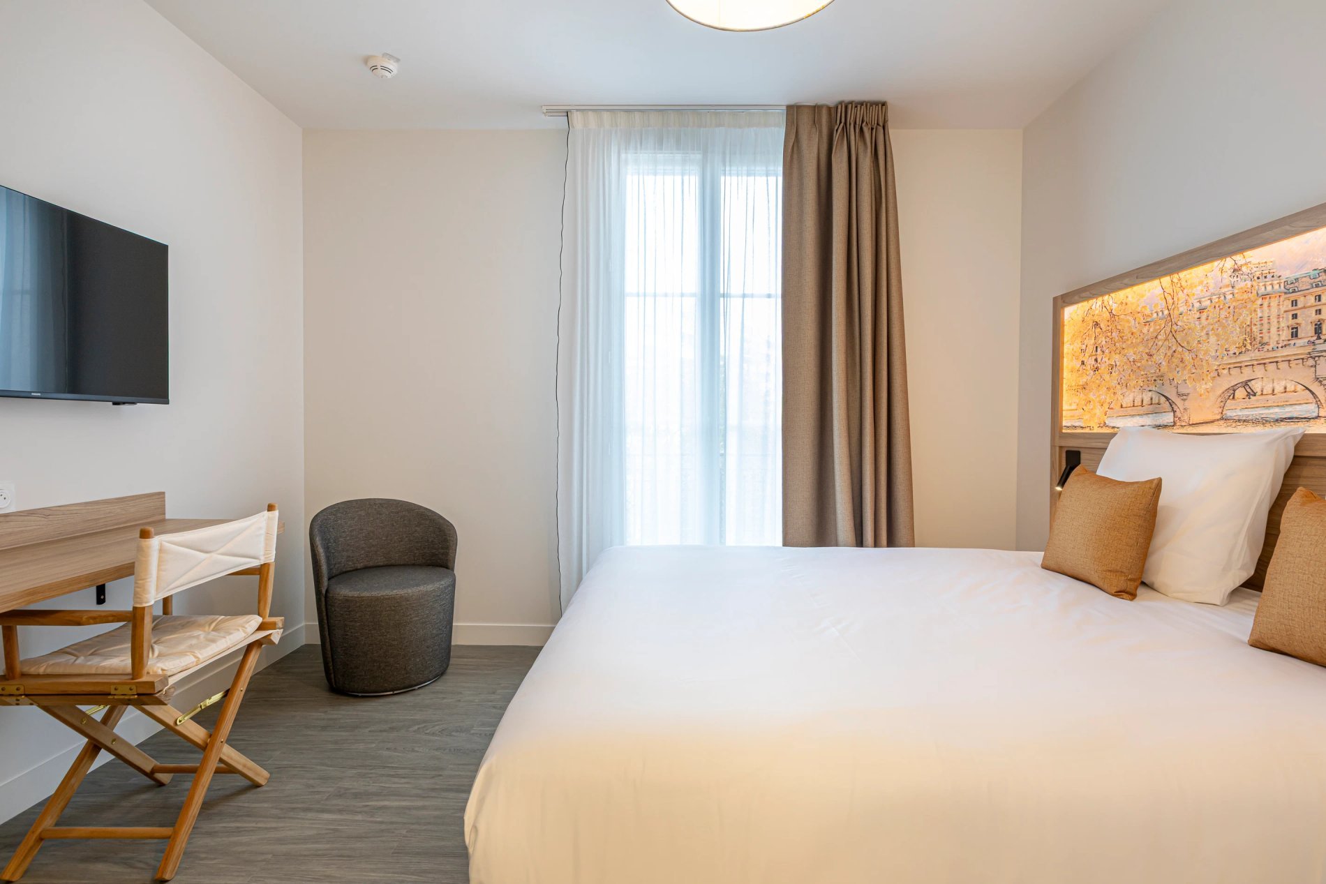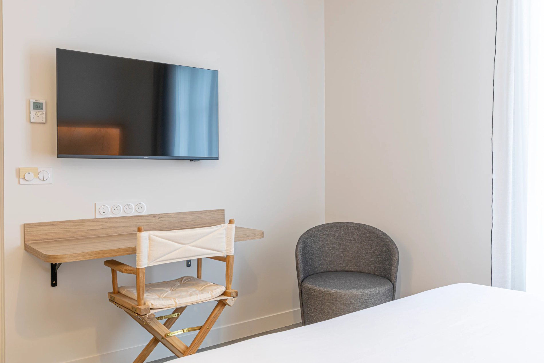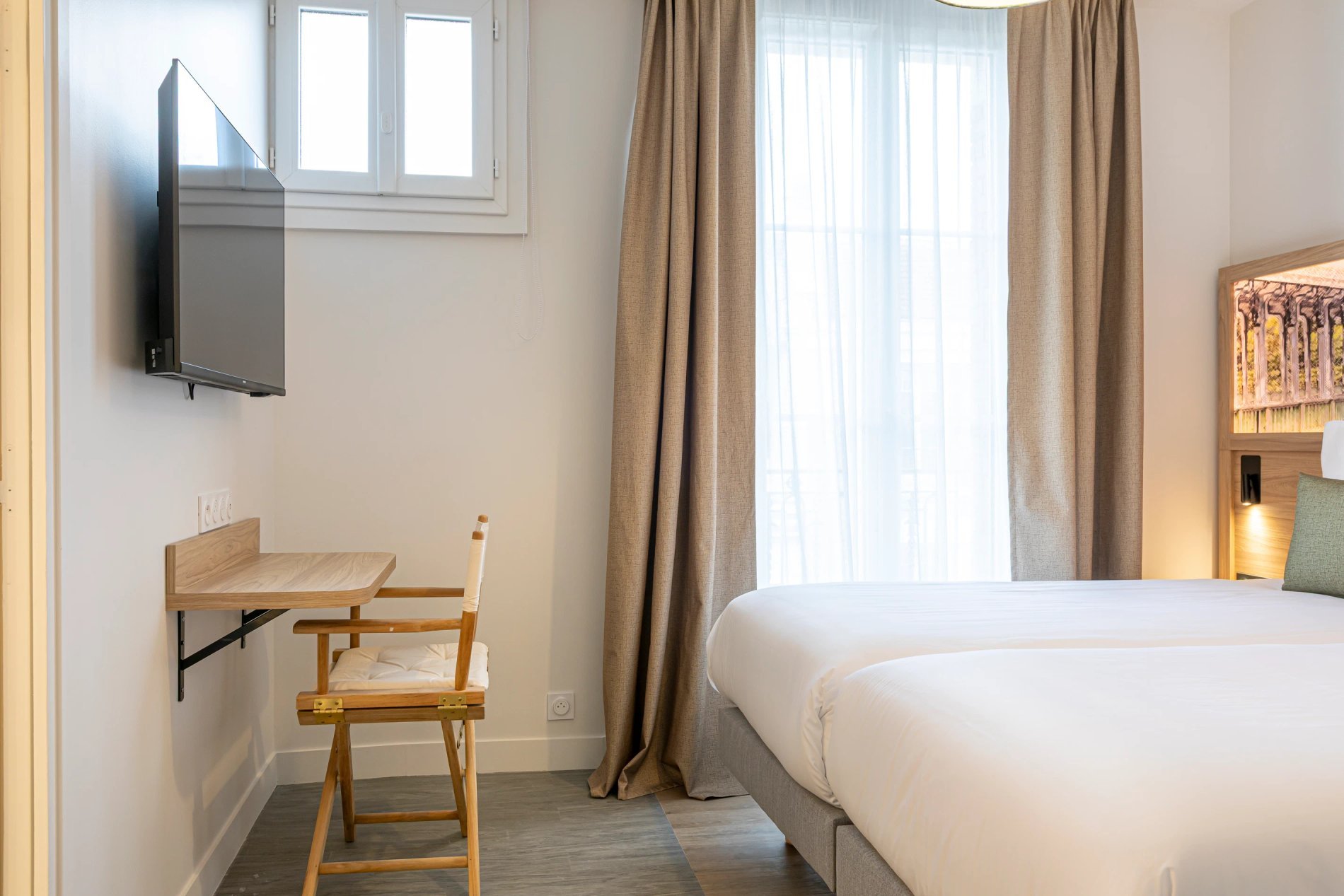 Perfect for a stay for two, the Signature Double Room features premium bedding and a retro-modern atmosphere. Its clean design and details inspired by Boulogne’s film heritage make it both stylish and welcoming.